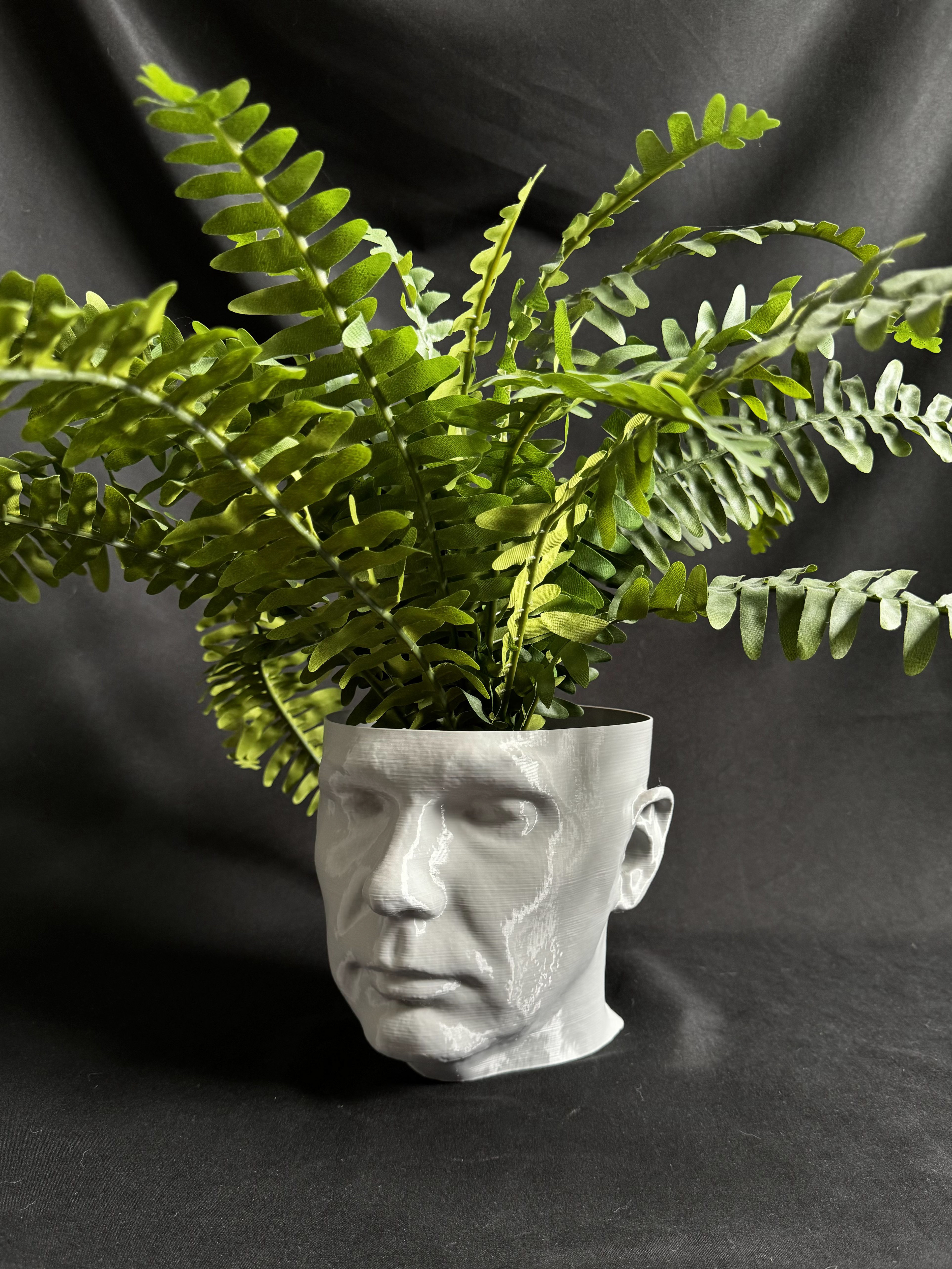 I was interested in 3D printing larger format prop or cosplay pieces, particular helmets, so I completed a 3D scan of my head to help with scaling. My first attempted print failed, but it turned into a bizarre planter that graces my wife's office.